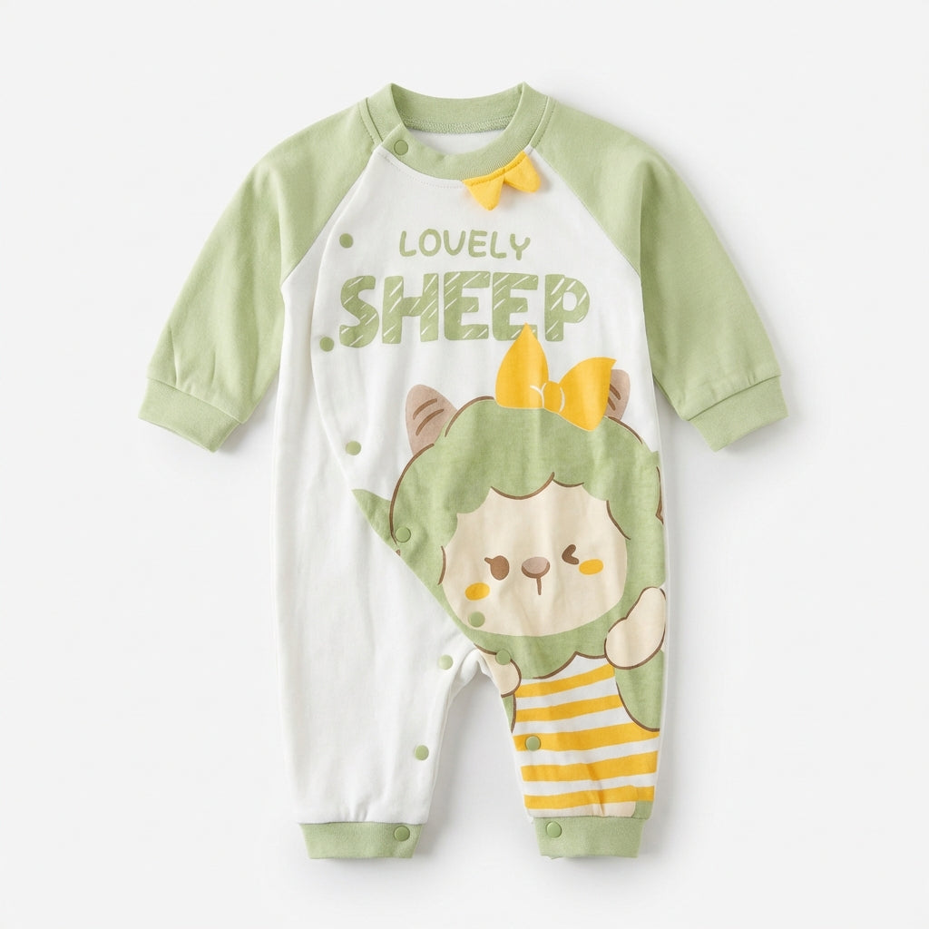 The wrap-style design with snap buttons makes dressing and diaper changes quick and hassle-free. Finished with ribbed cuffs and an adorable all-over print, this romper is perfect for playtime, naps, and cozy moments at home.